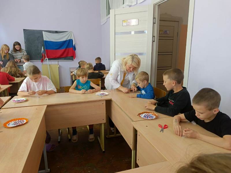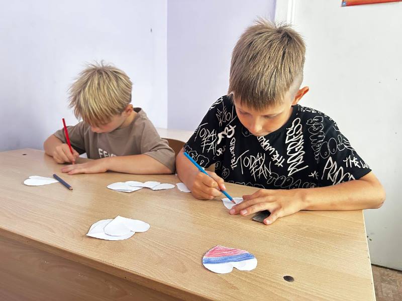 Активисты движения первых изготовили с детьми сердца триколор для отправки с письмами солдатам СВО.