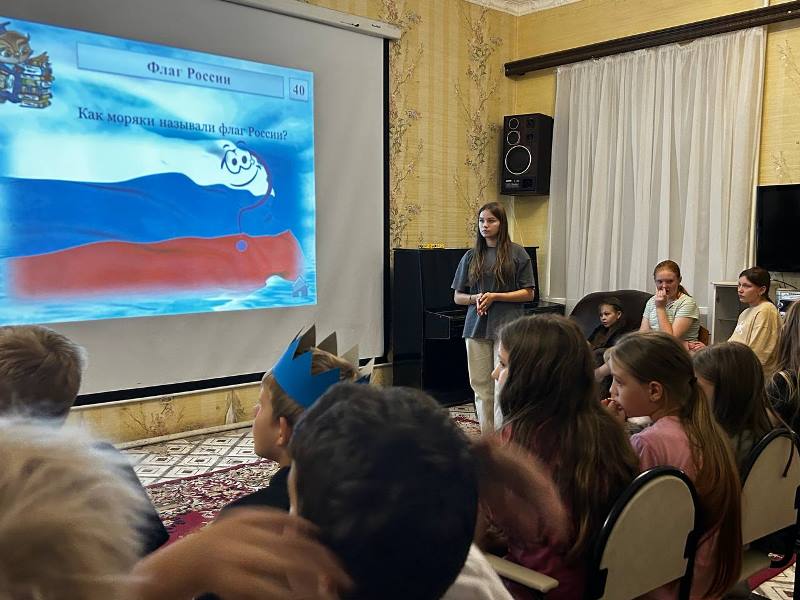 Ребята прошли интерактивную викторину "Знатоки символики. России", и узнали об истории флага нашей страны, о значении цветов флага и другие интересные факты о символах нашей Родины.