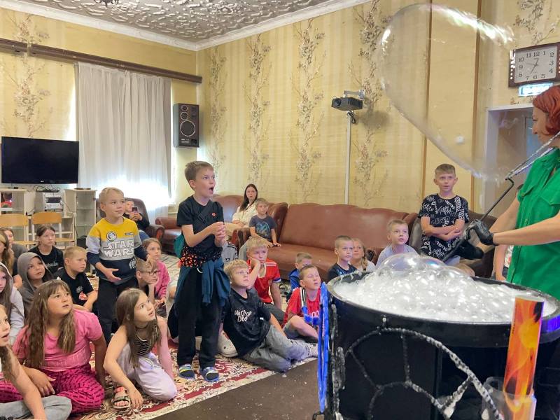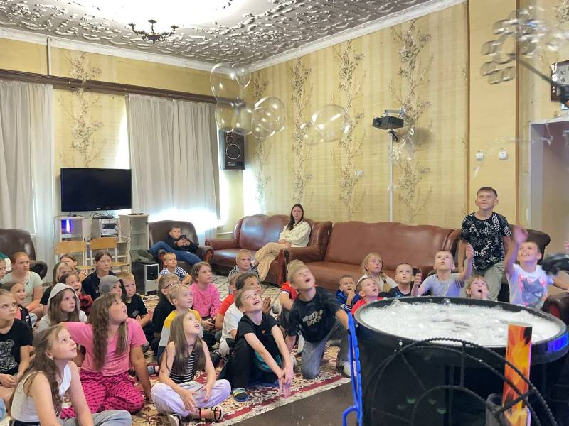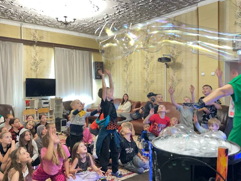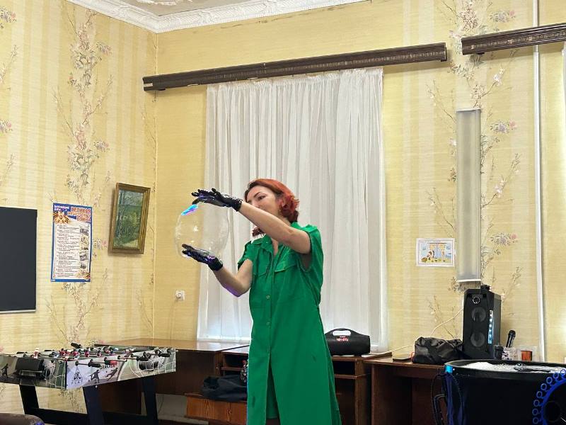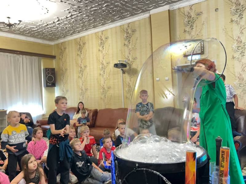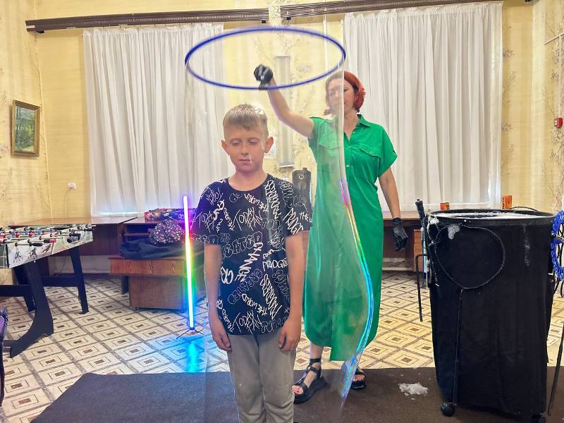 Шоу мыльных пузырей в санатории "Солнышко" вызвало восторг у детей. Яркие и красочные пузыри, которые летали над их головами, заставили их улыбнуться и восхищаться. Дети с радостью ловили пузыри и смеялись, когда они лопались. Погружение в мыльный пузырь - это был незабываемый опыт для каждого ребенка, который учавствовал в этом захватывающем представлении. Встречи с такими простыми и веселыми вещами, как мыльные пузыри, оставляют яркие воспоминания и радость в сердцах отдыхающих детей.